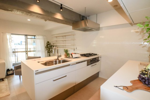 お洒落なオープンキッチン♪便利なカップボードも有ります♪ ※設置されている家具小物等はディスプレイ用です