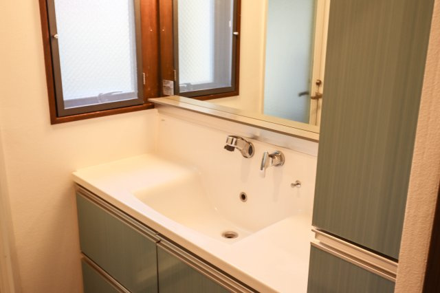 洗面室には便利な棚や窓があります♪